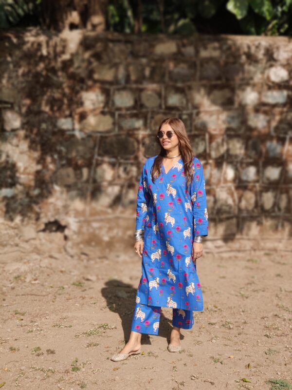 नीला Pichwai Cotton Co-ord Set