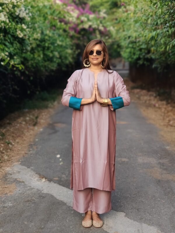 The relaxed-fit kurta ensures ease of movement and offers ample room for layering during colder months. It features a sharp notched neckline for a clean, professional look, along with 3/4th sleeves finished with minimalist yet elegant detailing.