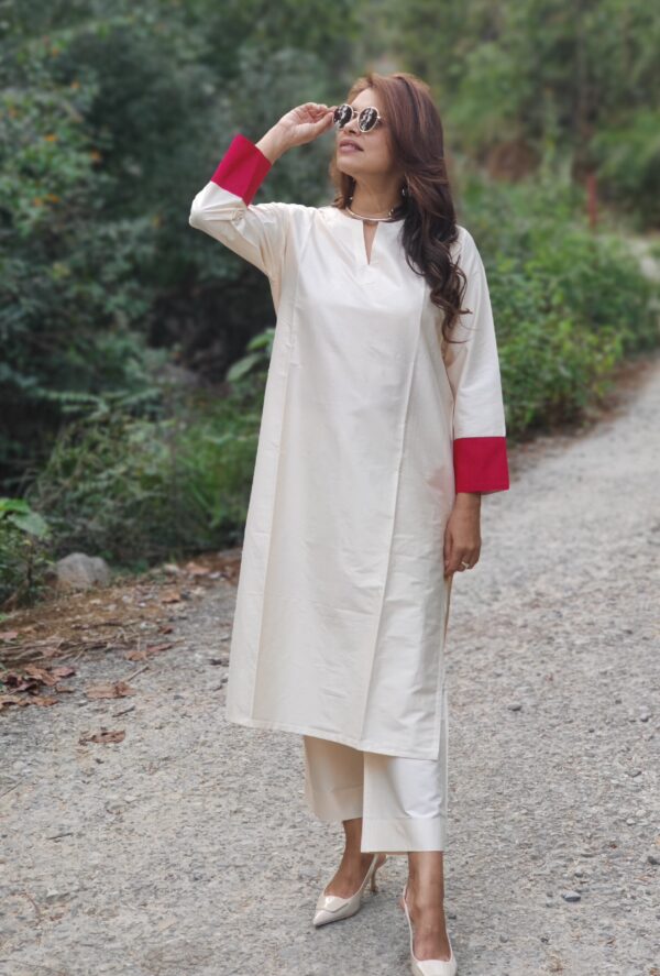 - Relaxed-fit kurta paired with straight-fit pants for effortless comfort and style.