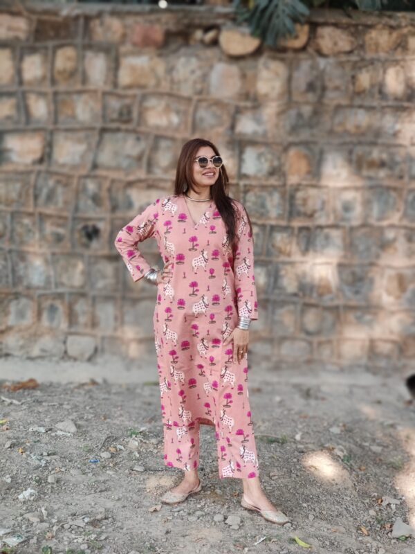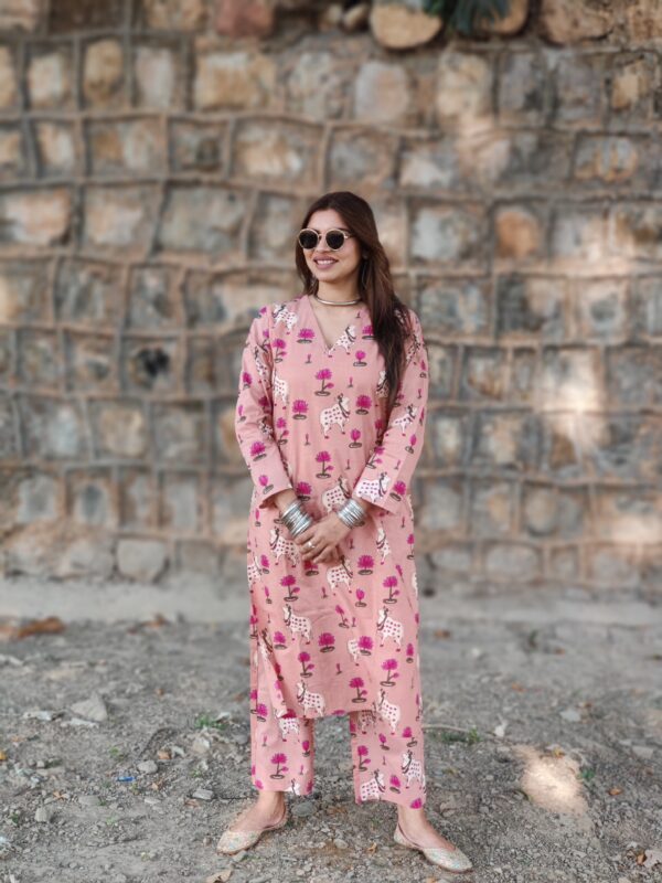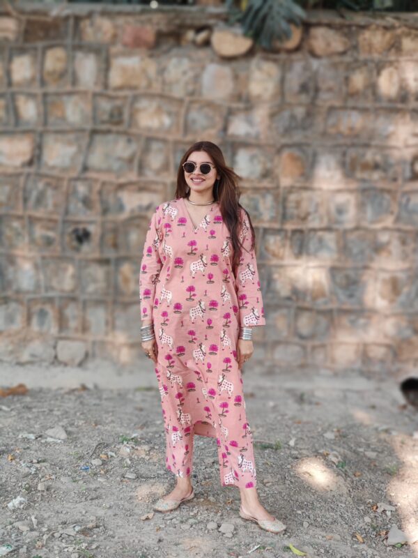 Peach Pichwai Cotton Co-ord Set