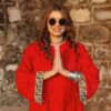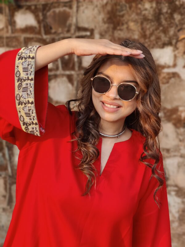 Inspired by traditional Kashmiri Pherans, this co-ord set features exquisitely embroidered bell sleeves and an elegant, timeless silhouette.
