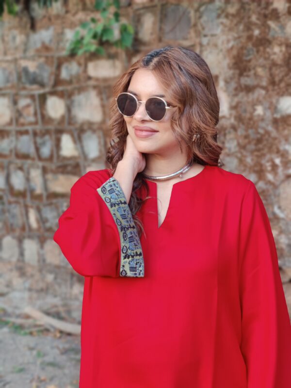 - Inspired by traditional Kashmiri pherans, this co-ord set features beautiful bell sleeves and an elegant, timeless silhouette.
