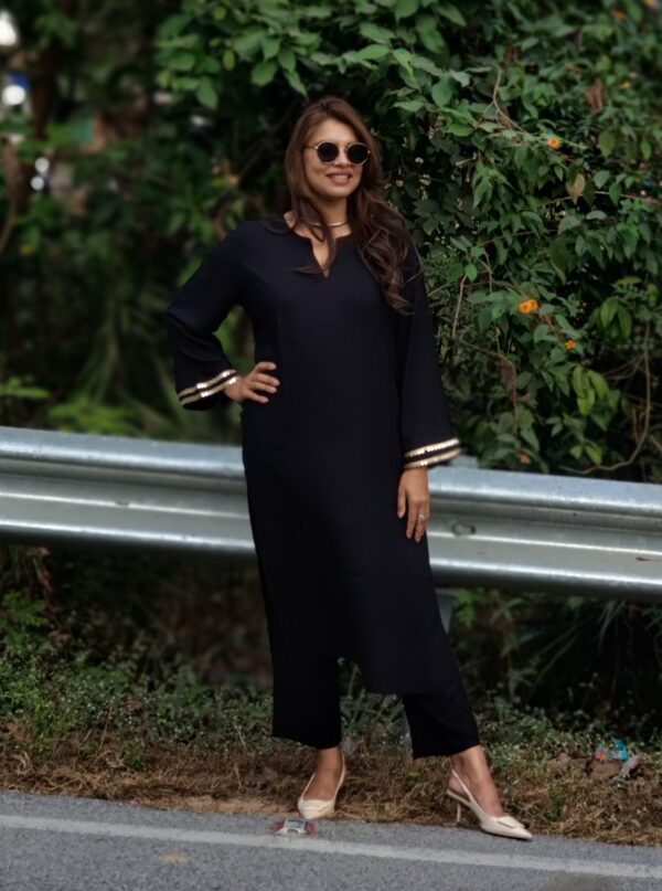 • Relaxed-fit kurta paired with straight-fit pants for effortless comfort and everyday elegance.